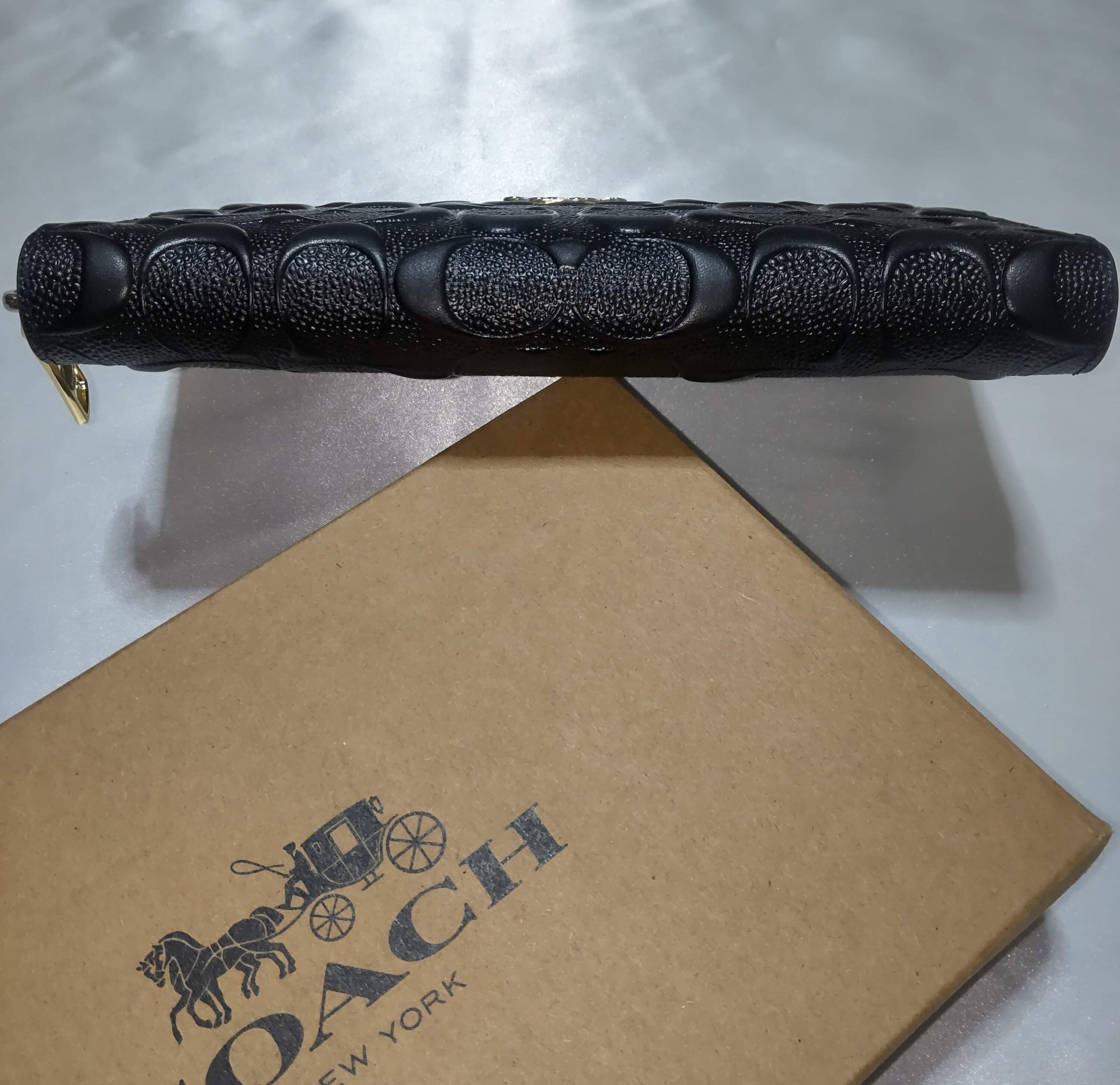 COACHコーチ 長財布 ラウンドファスナー シグネチャーエンボス ブラック
