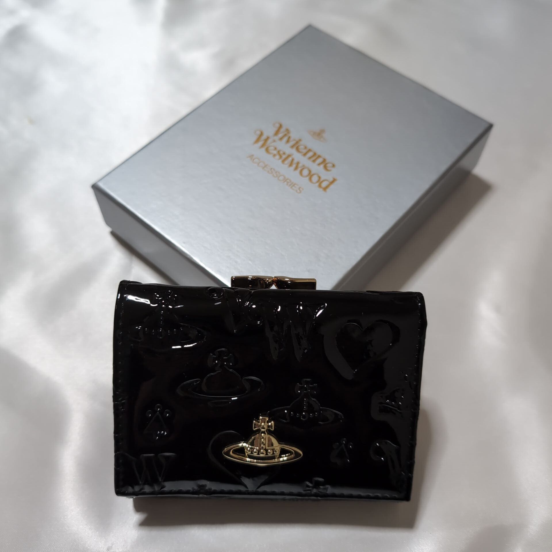 ヴィヴィアンウエストウッド エナメル がま口三つ折り財布 ブラック