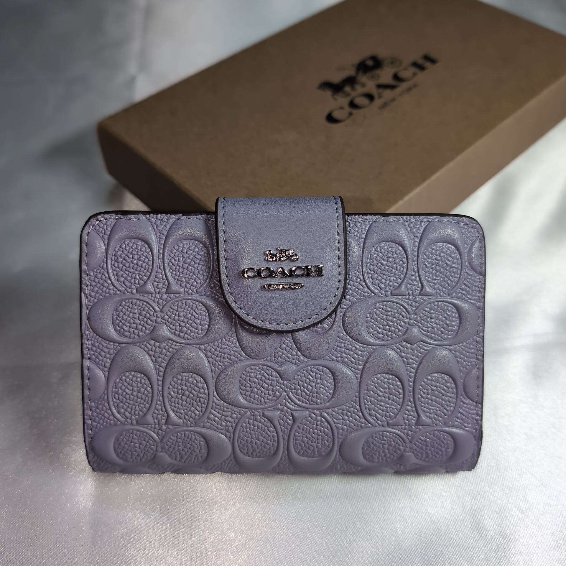 COACHコーチ 二つ折り財布 シグネチャーエンボス パープル