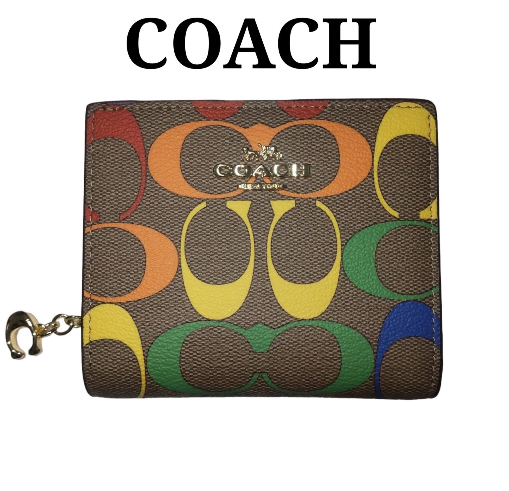 COACHコーチ 二つ折り財布 レインボーシグネチャー