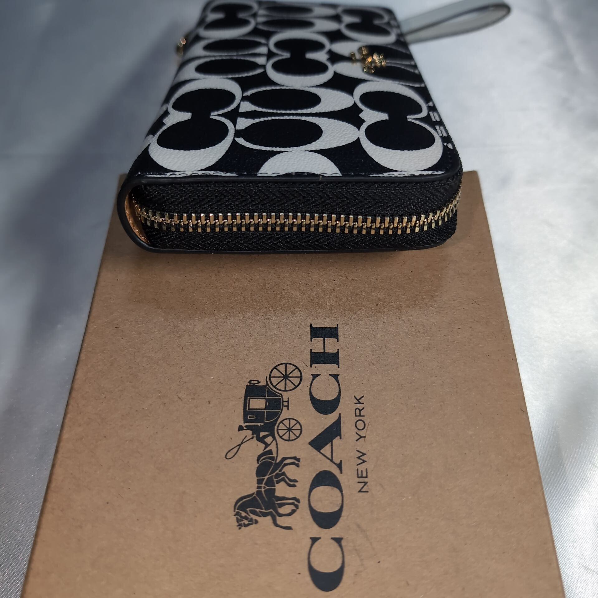 COACHコーチ ラウンドファスナー長財布 シグネチャー ブラック×ホワイト