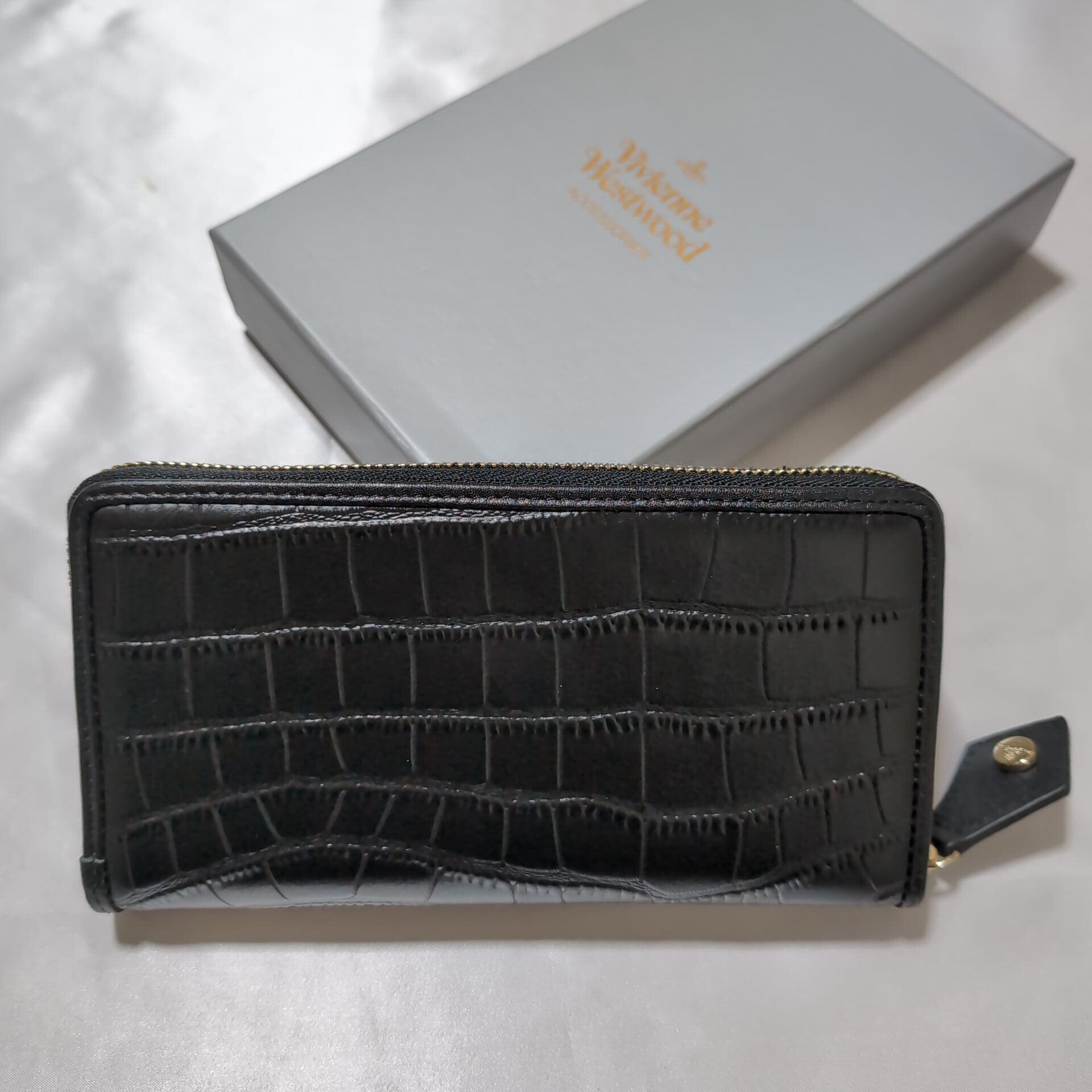 ヴィヴィアンウエストウッド ラウンドファスナー長財布 クロコ型押し ブラック