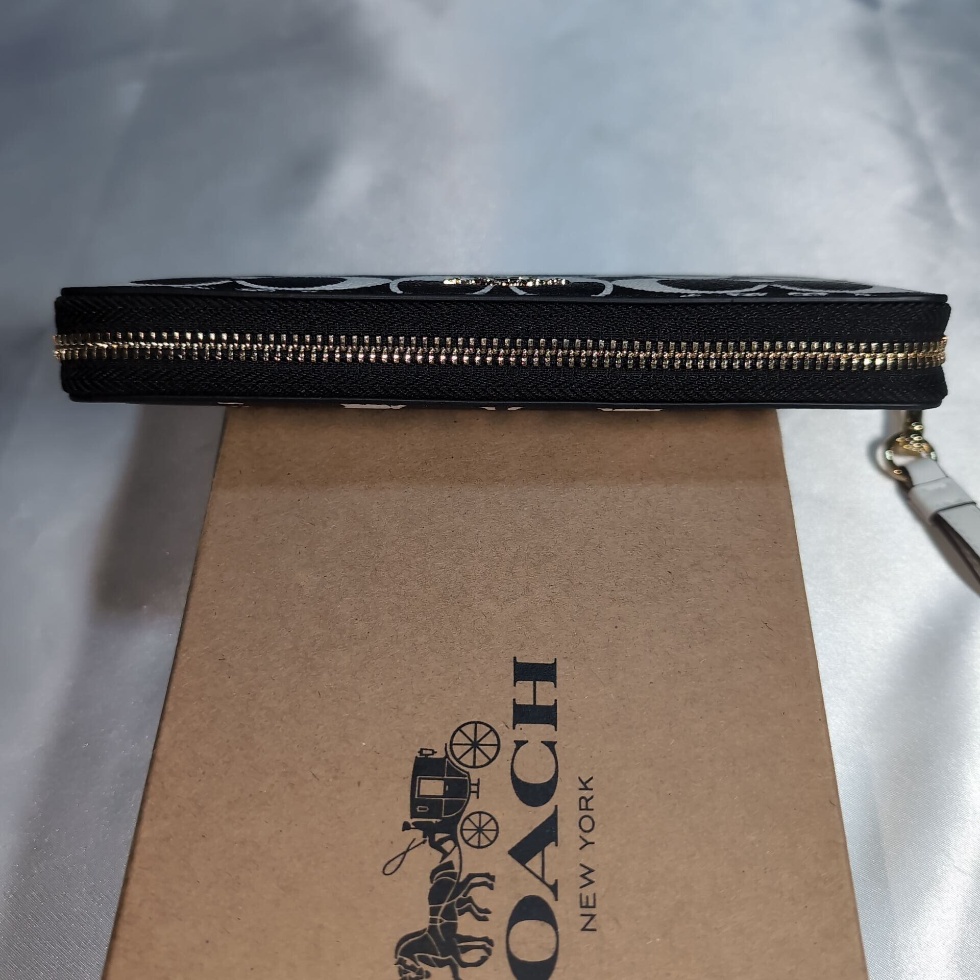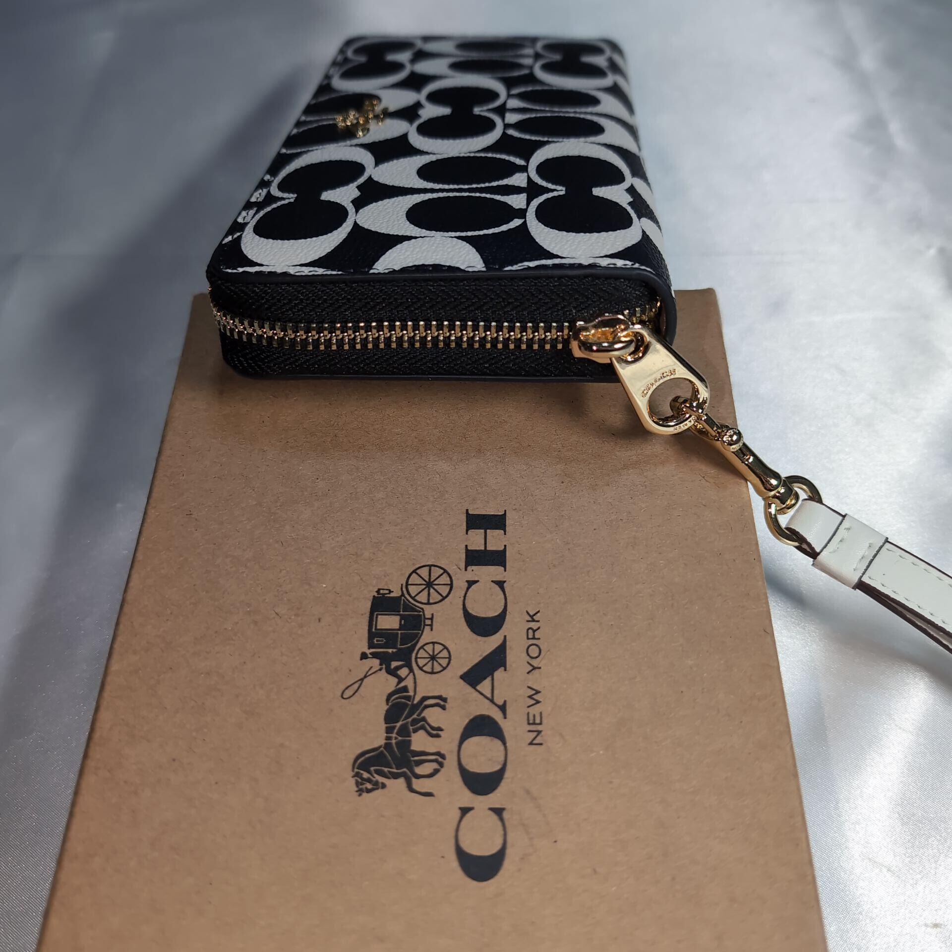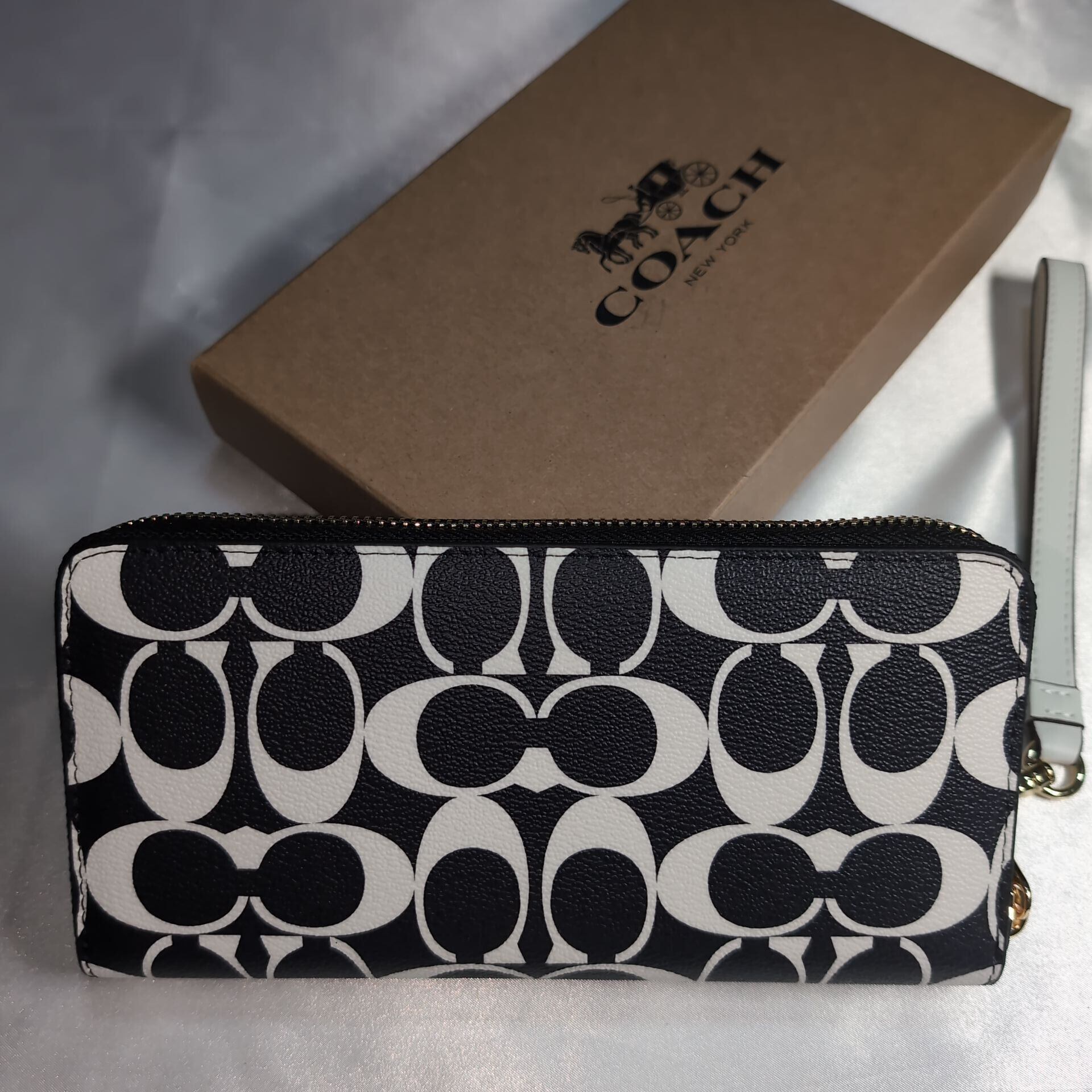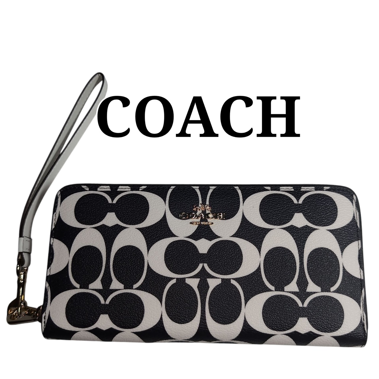COACHコーチ ラウンドファスナー長財布 シグネチャー ブラック×ホワイト