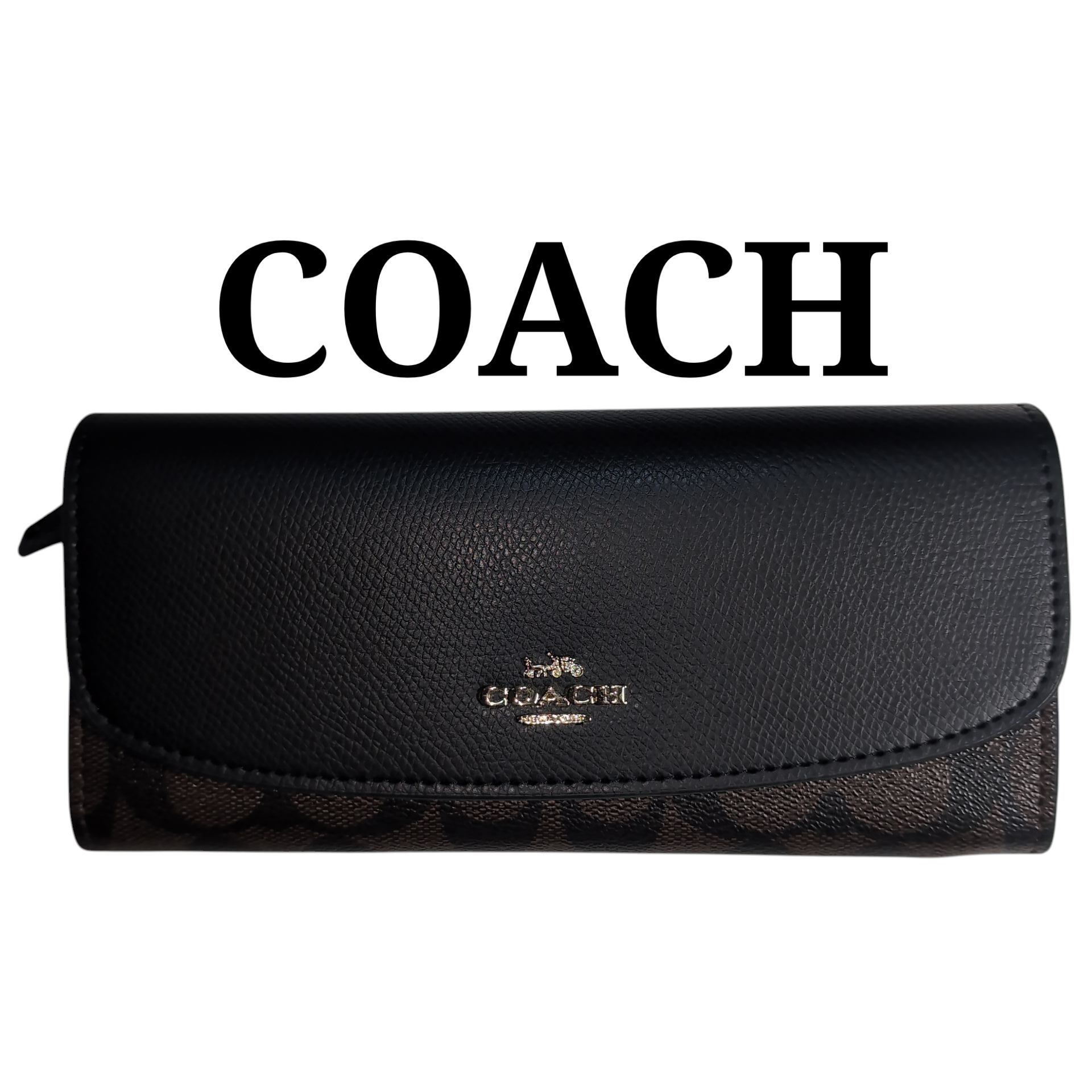 COACHの定番ライン「シグネチャー」より、スリムで使い勝手の良いエンベロープ型長財布です。