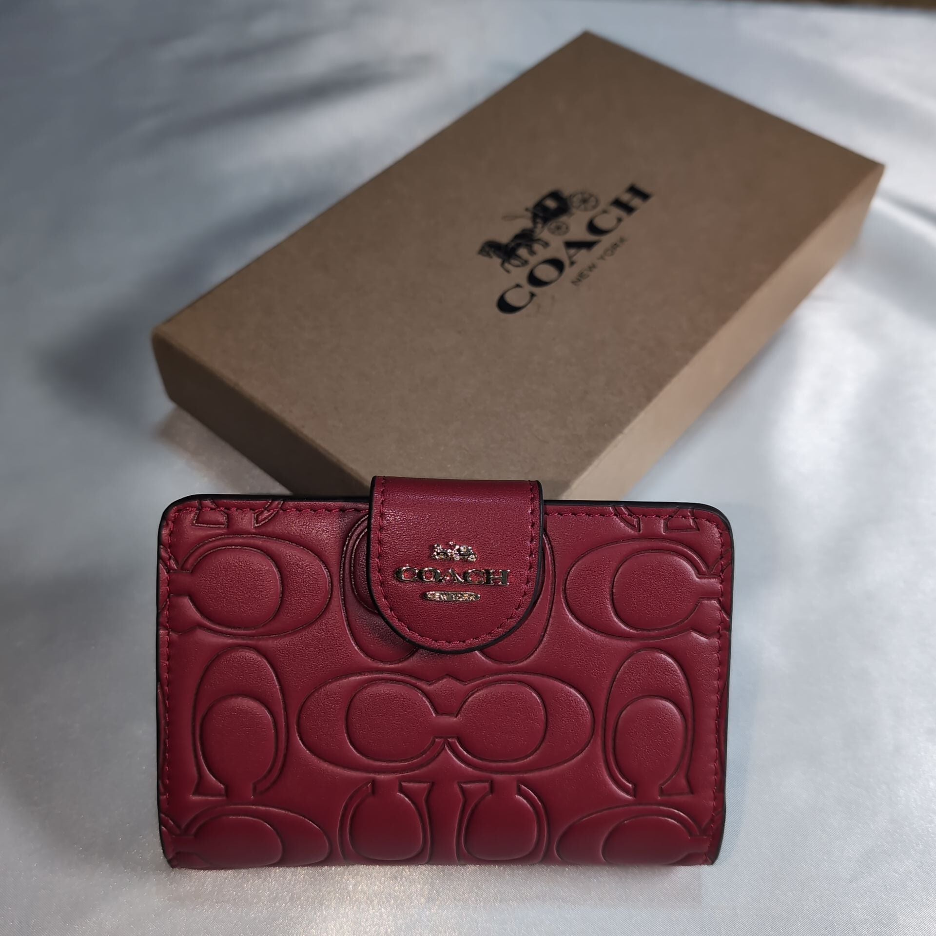 素敵なCOACHコーチのミディアム コーナー ジップ ウォレット・シグネチャーは、レッドのカラーが目を引きます。