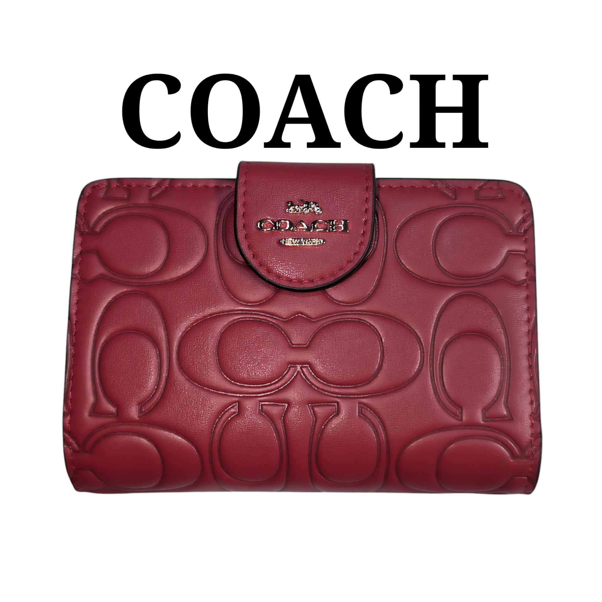 COACHコーチ 二つ折り財布 ミディアム コーナー ジップ ウォレット レッド